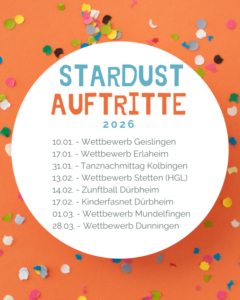 Wir sind unglaublich stolz: Beim Junioren-Showtanzwettbewerb in Erlaheim haben wir mit unserer Showtanzgruppe „STARDUST“ den 3. Platz von insgesamt neun Showtanzgruppen erreicht. Mit dabei waren starke Gruppen aus Bierlingen, Geislingen, Gruol, Hart, Rangendingen, Spaichingen, Stetten-Haigerloch und Trillfingen.